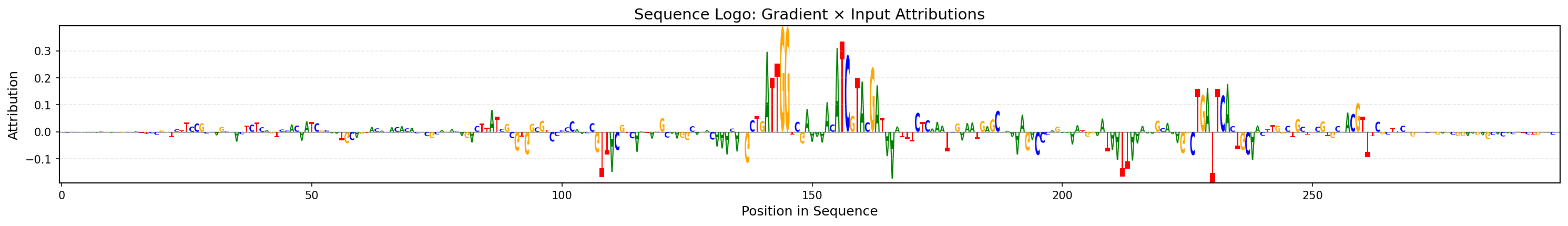 - See our [MPRA post](https://genomicsxai.github.io/blogs/2026-002/) for more details on this fine-tuning. We can see the model highlights an AP-1 motif around position ~230, consistent with known enhancer regulatory logic. attribution map](/blogs/2026-003/sequence_logo_gradient_x_input.png)